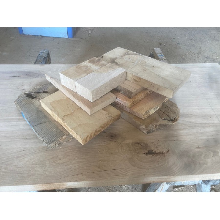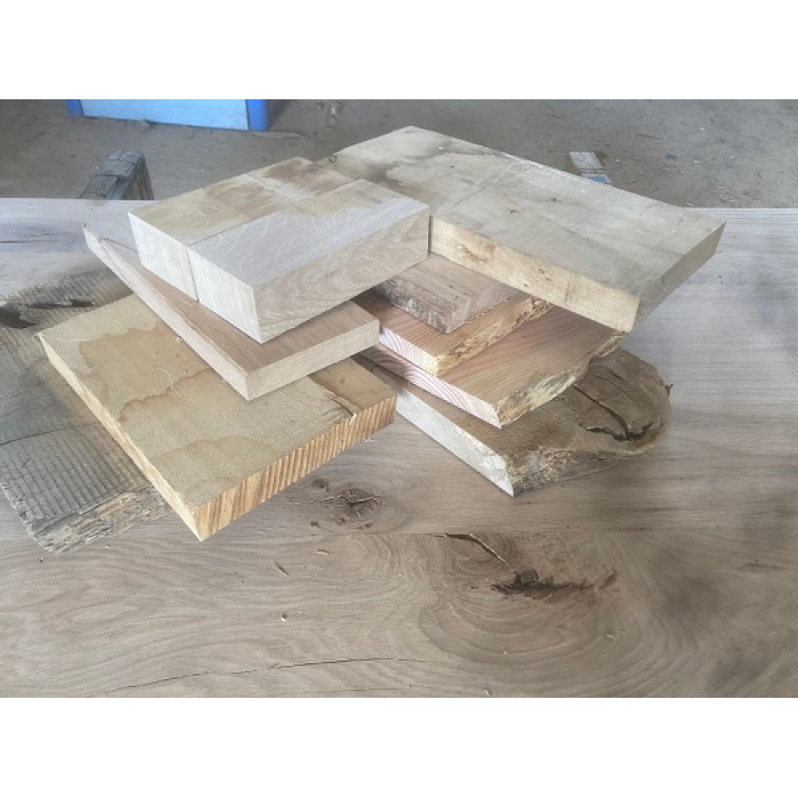 10 Abschnitte Eichenholz in unterschioedluichen Größen - Stärken, zum Teil gehobelt. Maße zwischen 15-40 cm in Länge und Breite... Die meisten Stücke um 30 cm herum!